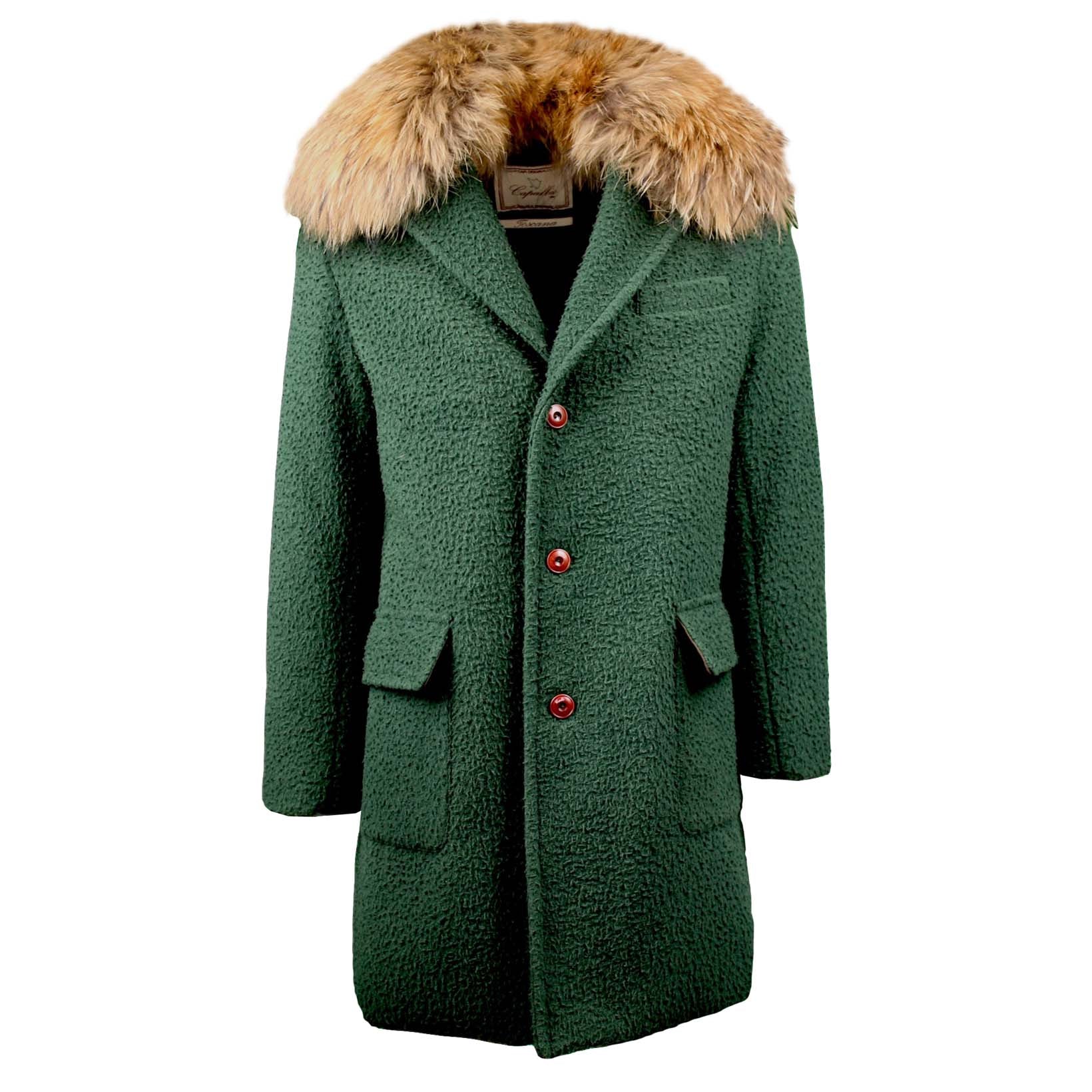 Dieser klassische Herrenmantel verbindet italienische Handwerkstradition mit zeitloser Eleganz. Gefertigt aus authentischer Casentino-Wolle – einem robusten, wasserabweisenden Material mit Ursprung in der italienischen Toskana – bietet er zuverlässigen Schutz vor Witterung. Der charakteristische Pelzkragen aus Waschbär verleiht dem Mantel Raffinesse und zusätzliche Wärmeisolation. Praktische Details wie zwei Aufsetztaschen und Eingriffstaschen auf der Brust ermöglichen komfortables Verstauen persönlicher Gegenstände. Ein Investment-Piece für anspruchsvolle Herren, die Qualität und Stil schätzen.