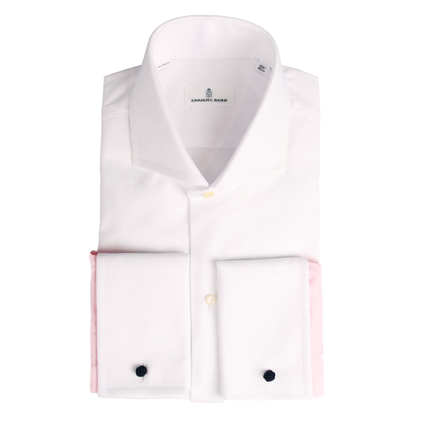 Perfect for formal occasions, the Marcella Smoking shirt is a timeless, classic, elegant piece of clothing. It is made of 100% cotton and equipped with an elegant waffle piqué/ Marcella front in white. The pink contrasting sleeves set an additional, stylish accent.
