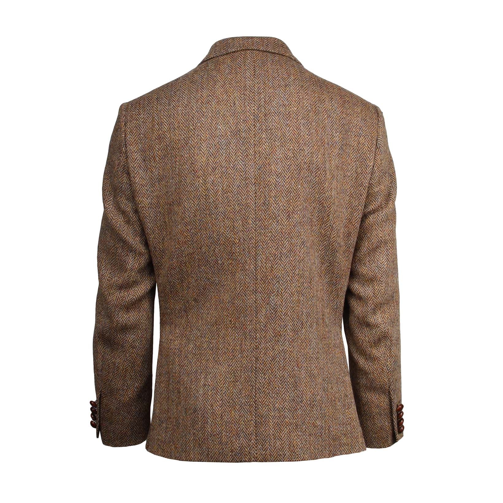 Sporty-rustic 2-button Tweed-Sako from British House-perfect for the autumn stroll through or the next trip to the country. The leather buttons correspond to the color shades typical of the fishing rates - here in the most beautiful brown tones. The green inner lining forms a great contrast.