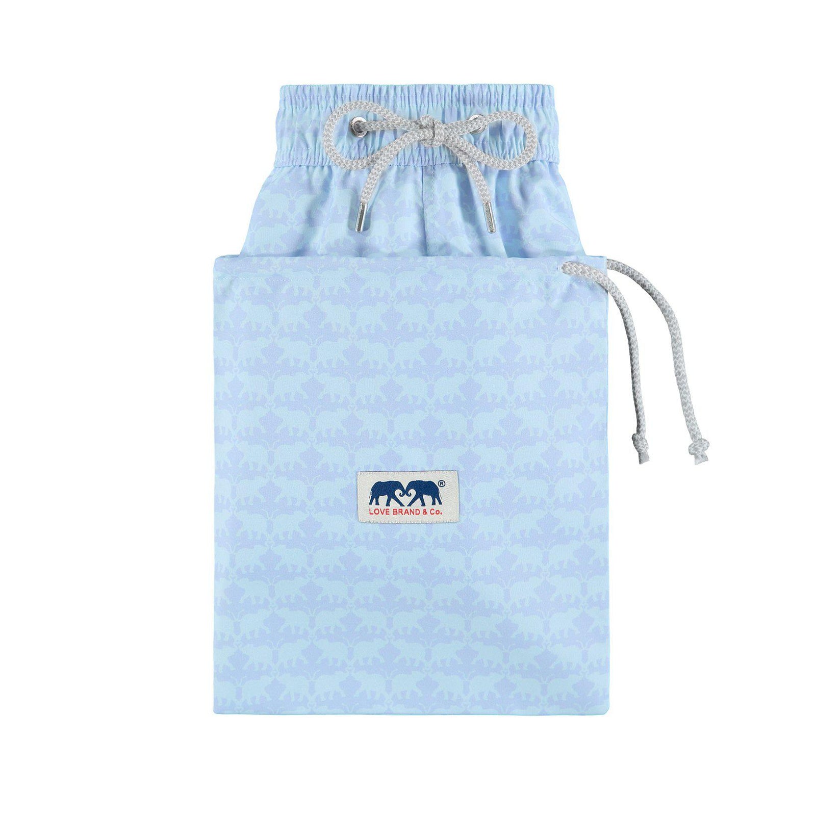 A characteristic elephant print in light blue shades. Oliver of Love Brand Co. draws the elephants by hand, the trunks dancing. The pressure is a symbolic celebration of Olivers Mission to save elephants in the wild. This pressure is inspired by the common Engagement by Love Brand Co. and charity partners Wildaid to rescue wildlife.
