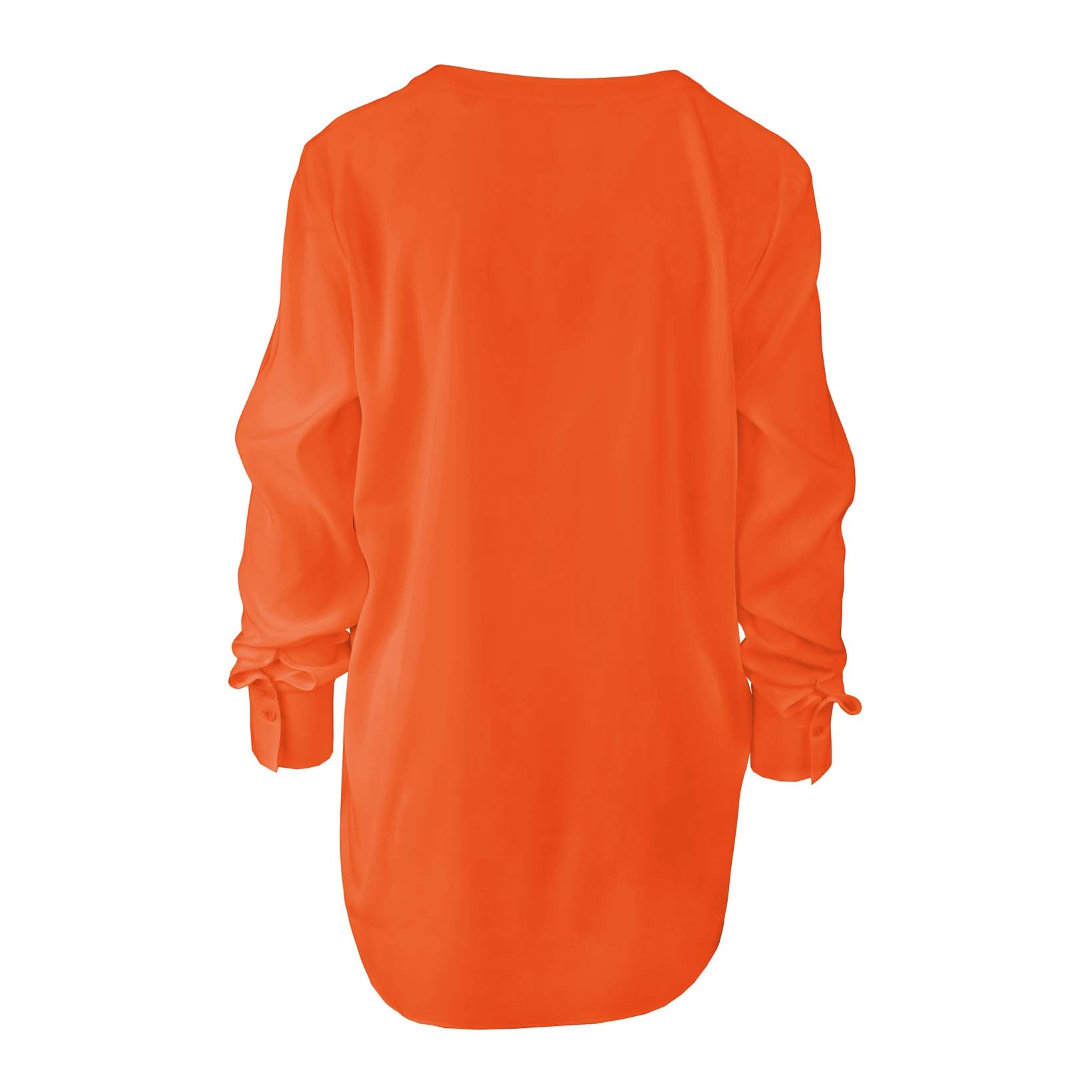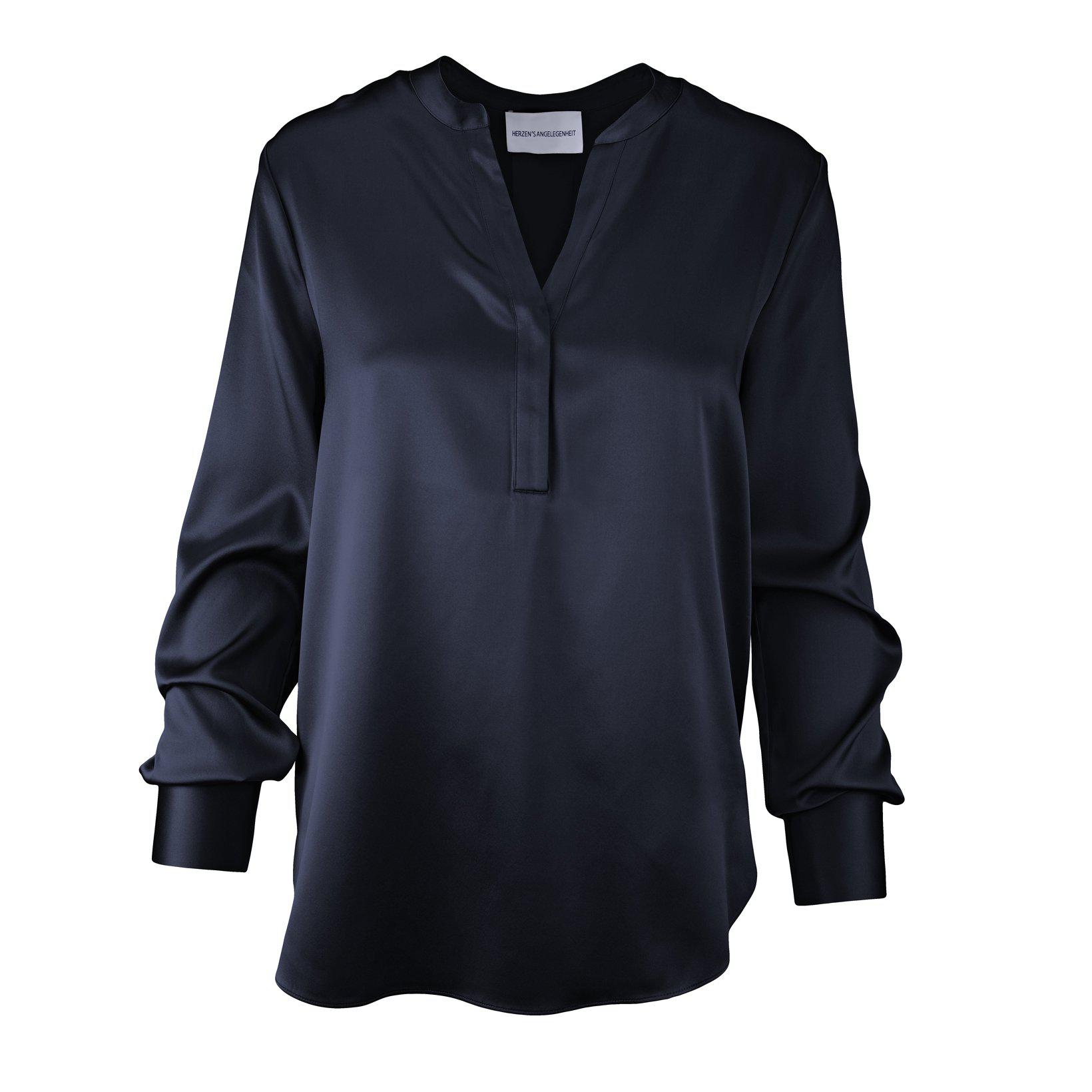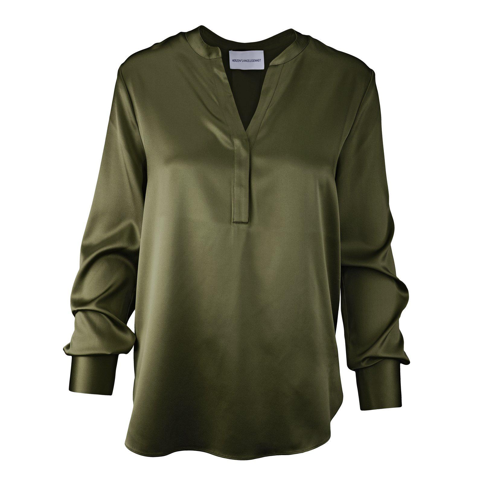 This silk tunic offers a stylish look and comfortable wear. The V-neck and silky sheen provide a sophisticated look. In addition, the tunic has buttons on the sleeves and a rounded hem that is longer in the back than in the front. The luxurious material is made of silk and elastane.