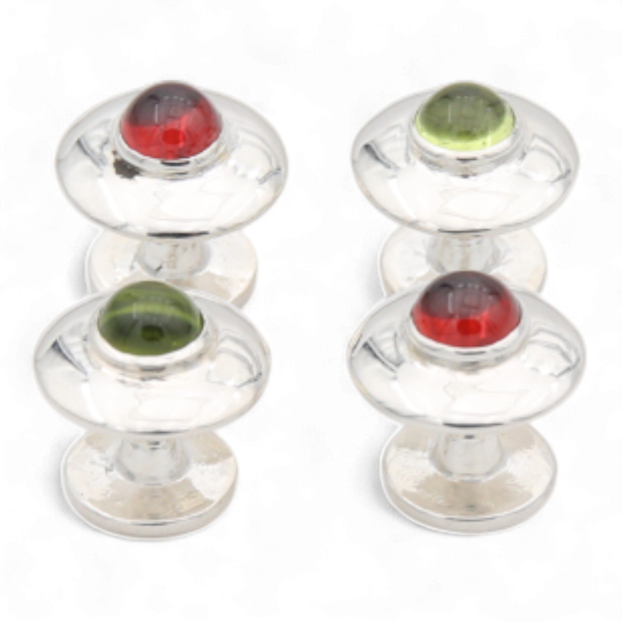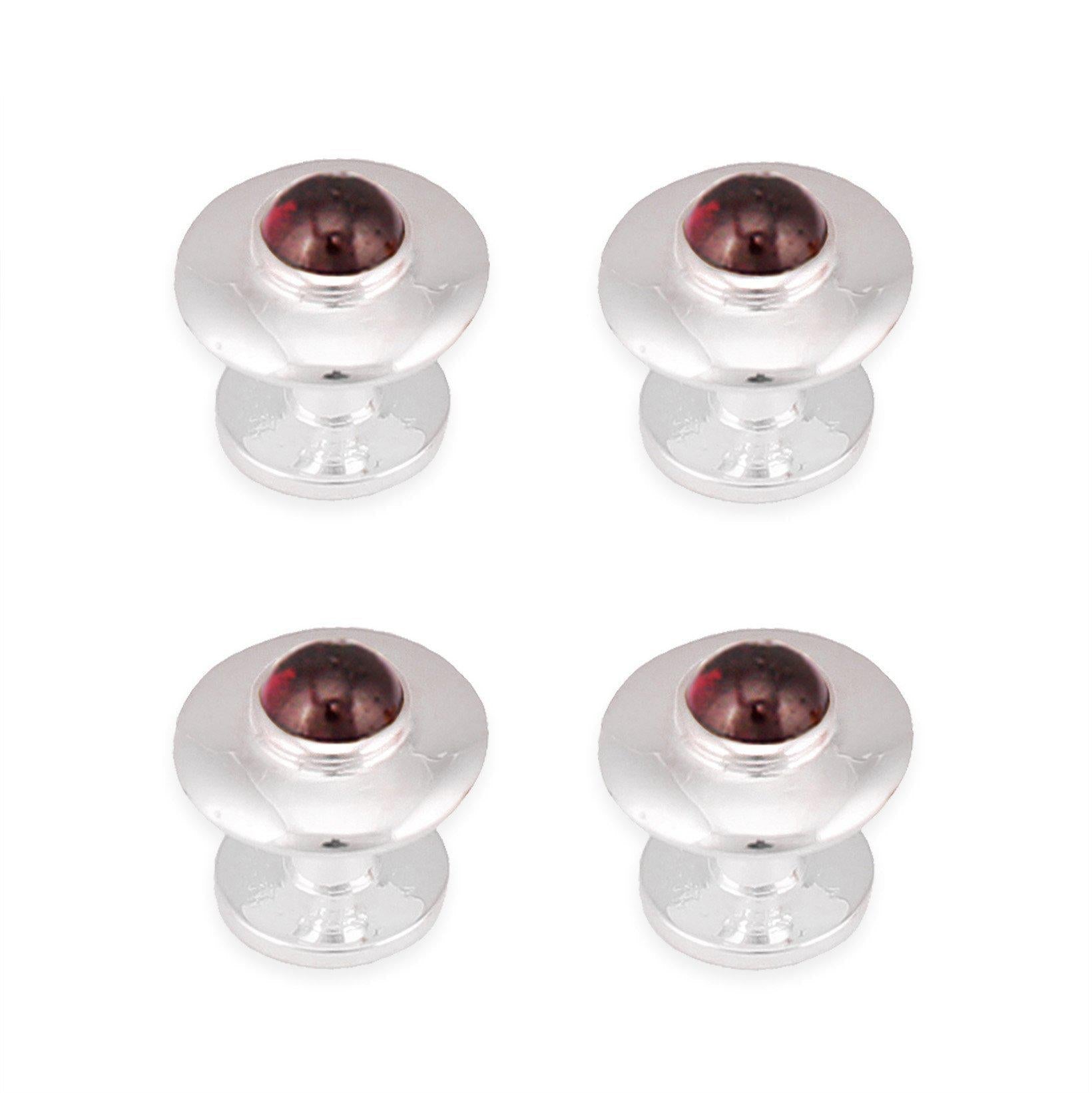Cada botón está elaborado artísticamente con plata de ley 925 de alta calidad, que no solo representa elegancia atemporal, sino también longevidad y valor. La plata radiante crea un contraste perfecto con la característica principal de estos botones: las impresionantes piedras preciosas de granate.