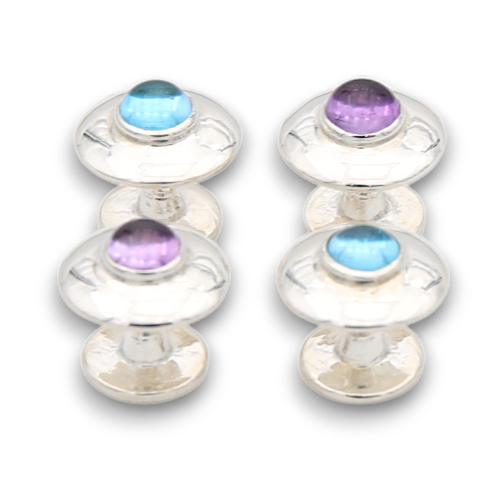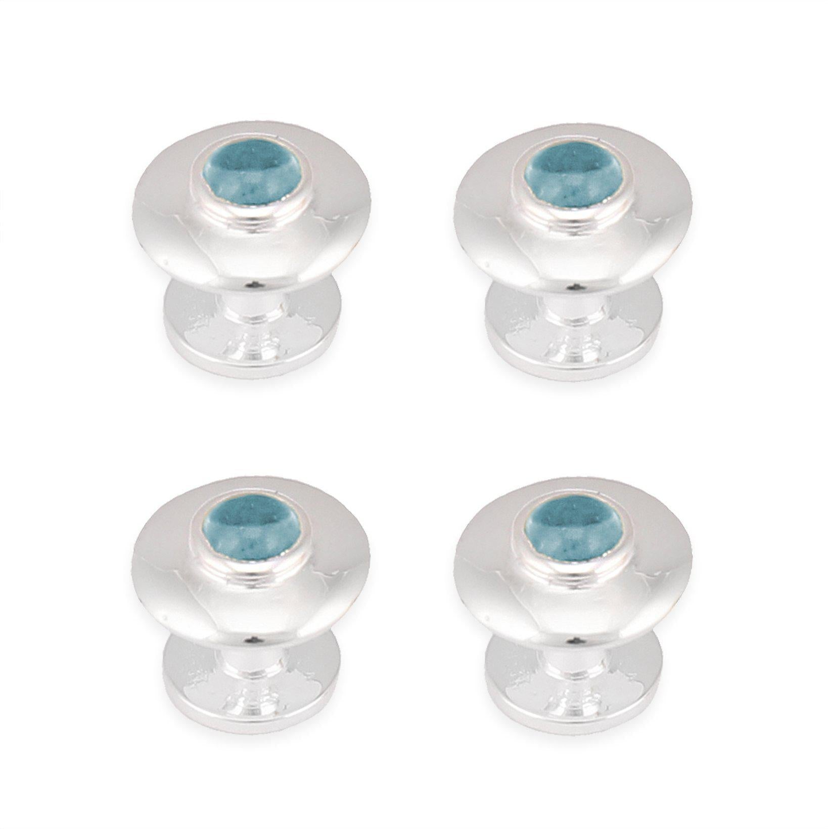 Cada botón de este juego está ingeniosamente elaborado en plata de ley 925 para garantizar una durabilidad atemporal y un brillo sofisticado. La plata de alta calidad sirve como base perfecta para la brillante piedra preciosa, en este caso un impresionante topacio azul.