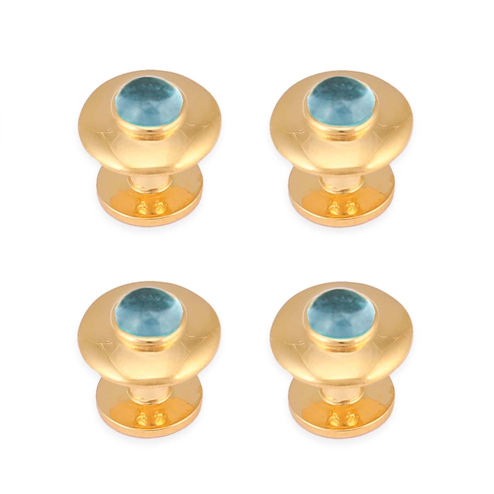 Cada botón está elaborado magistralmente con topacio azul, una piedra preciosa conocida por su tono azul claro y elegante. La belleza atemporal del topacio azul confiere a cada camisa un aspecto noble y sofisticado, mientras que la superficie lisa de la piedra proporciona un brillo sutil.
