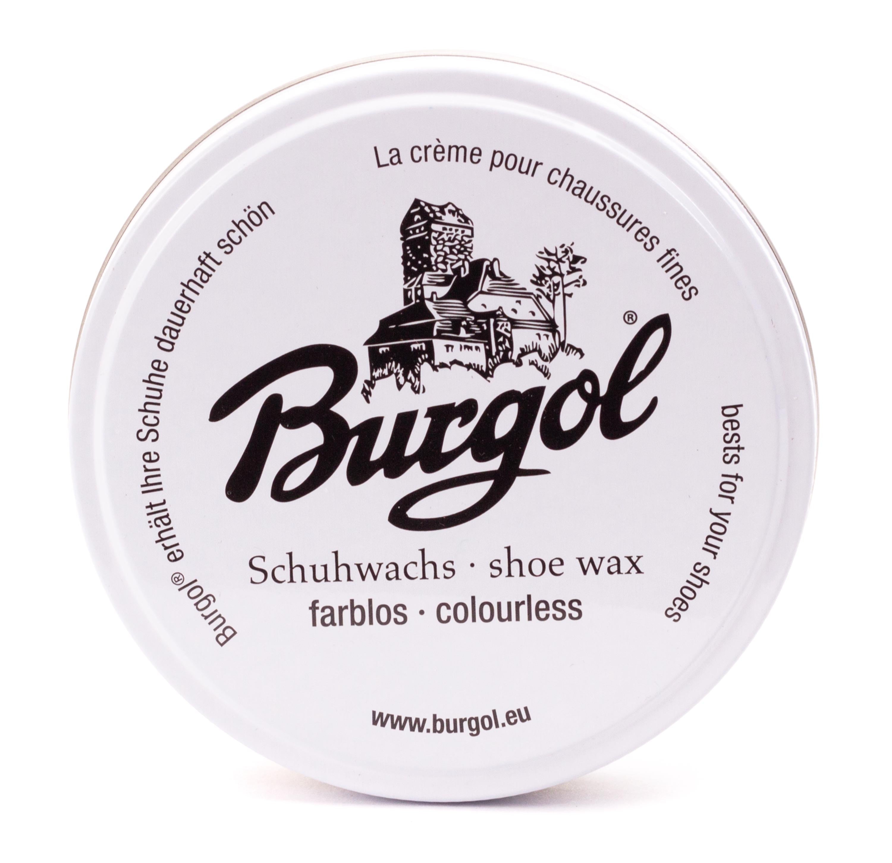 Appliquez la cire de chaussure Burgol avec un pinceau de commande ou le burgol tiegelbrush très finement selon la devise "moins c'est plus". Ensuite, lissez la surface avec un chiffon de nettoyage de chaussures et faites-la vérifier environ 15 minutes. Ensuite, brossez le cuir avec une brosse de polissage Rosshaar sur Shine. Vous pouvez atteindre un vernis brillant noble grâce à l'utilisation ultérieure de brosses de polissage fins, soit à partir de chèvre ou de yakhaar.
