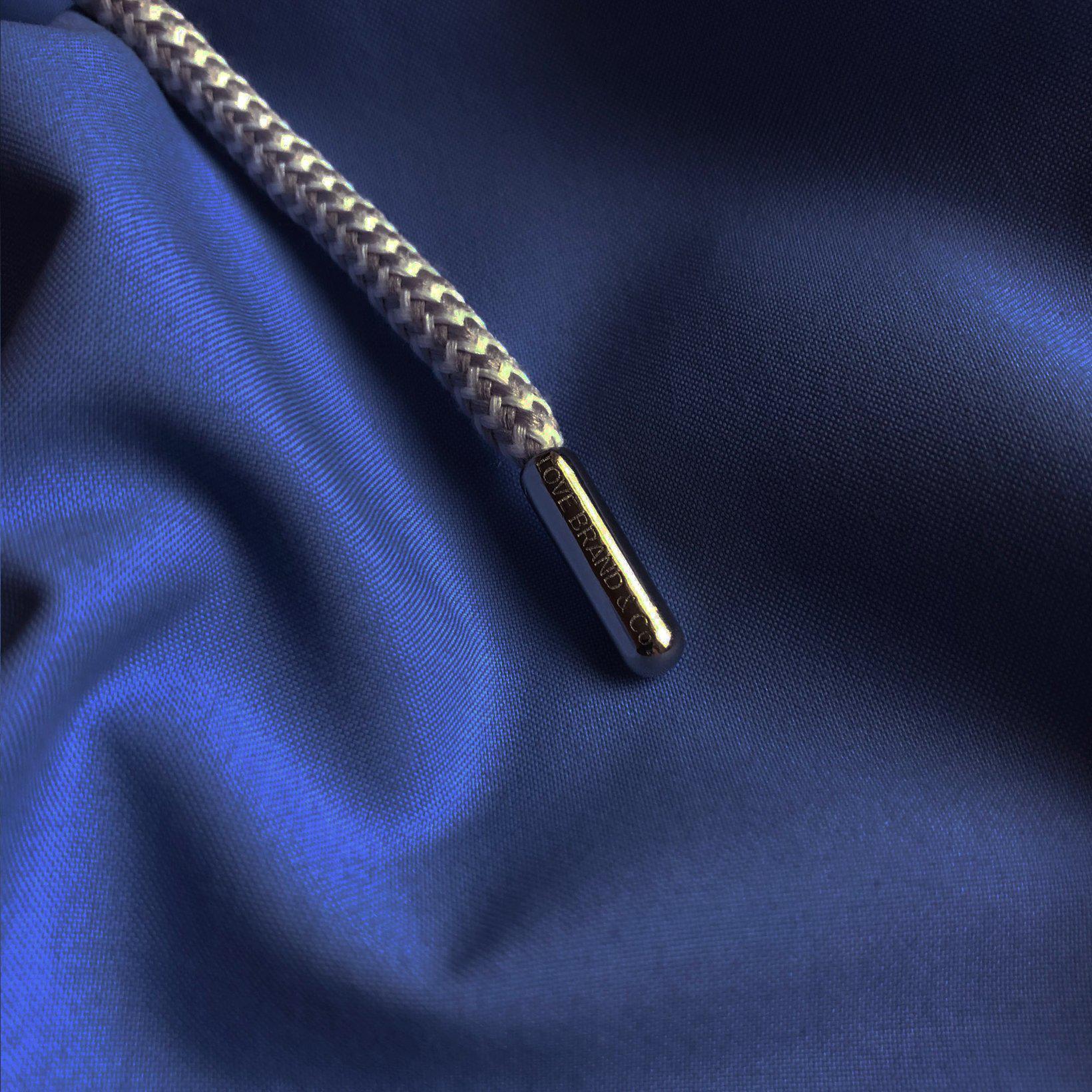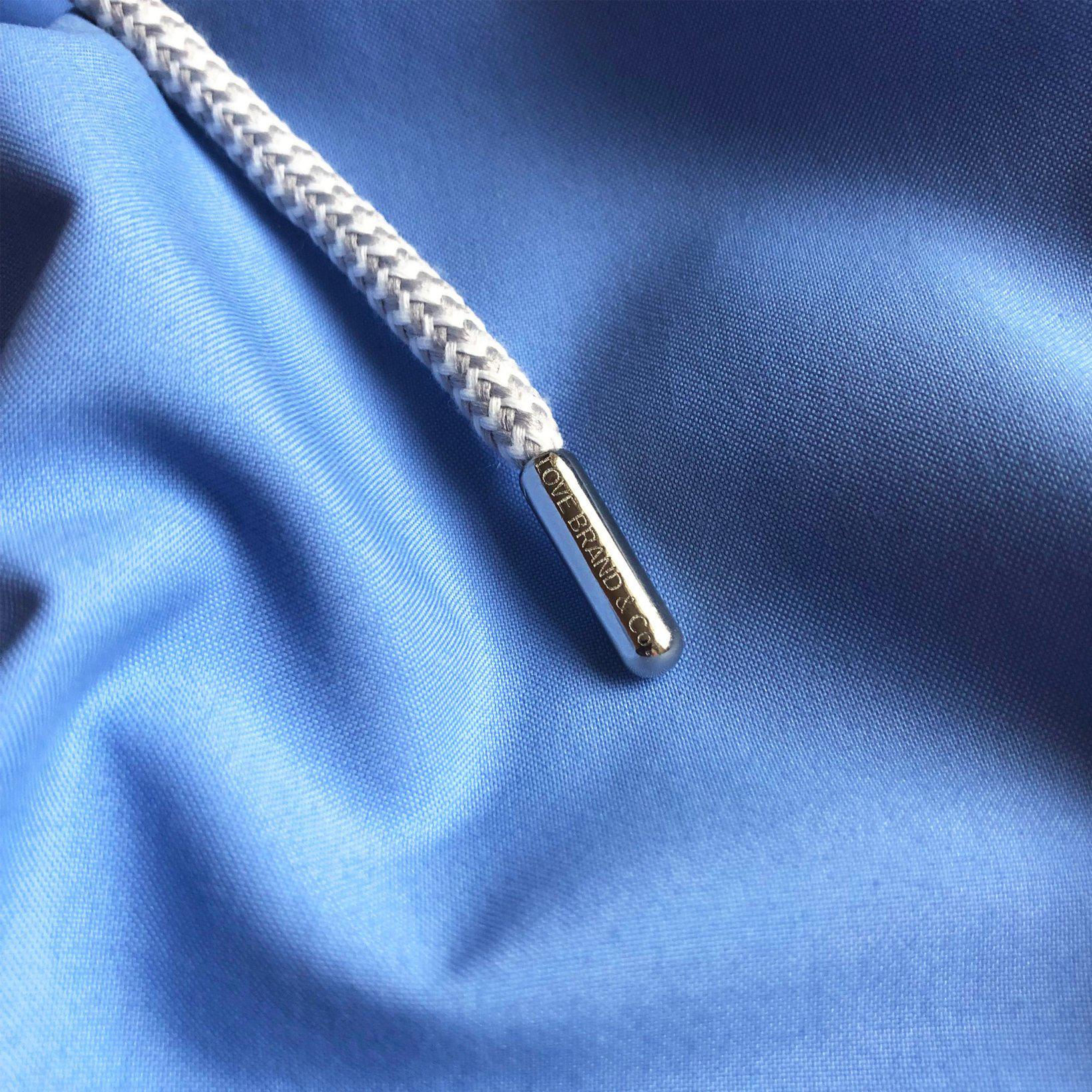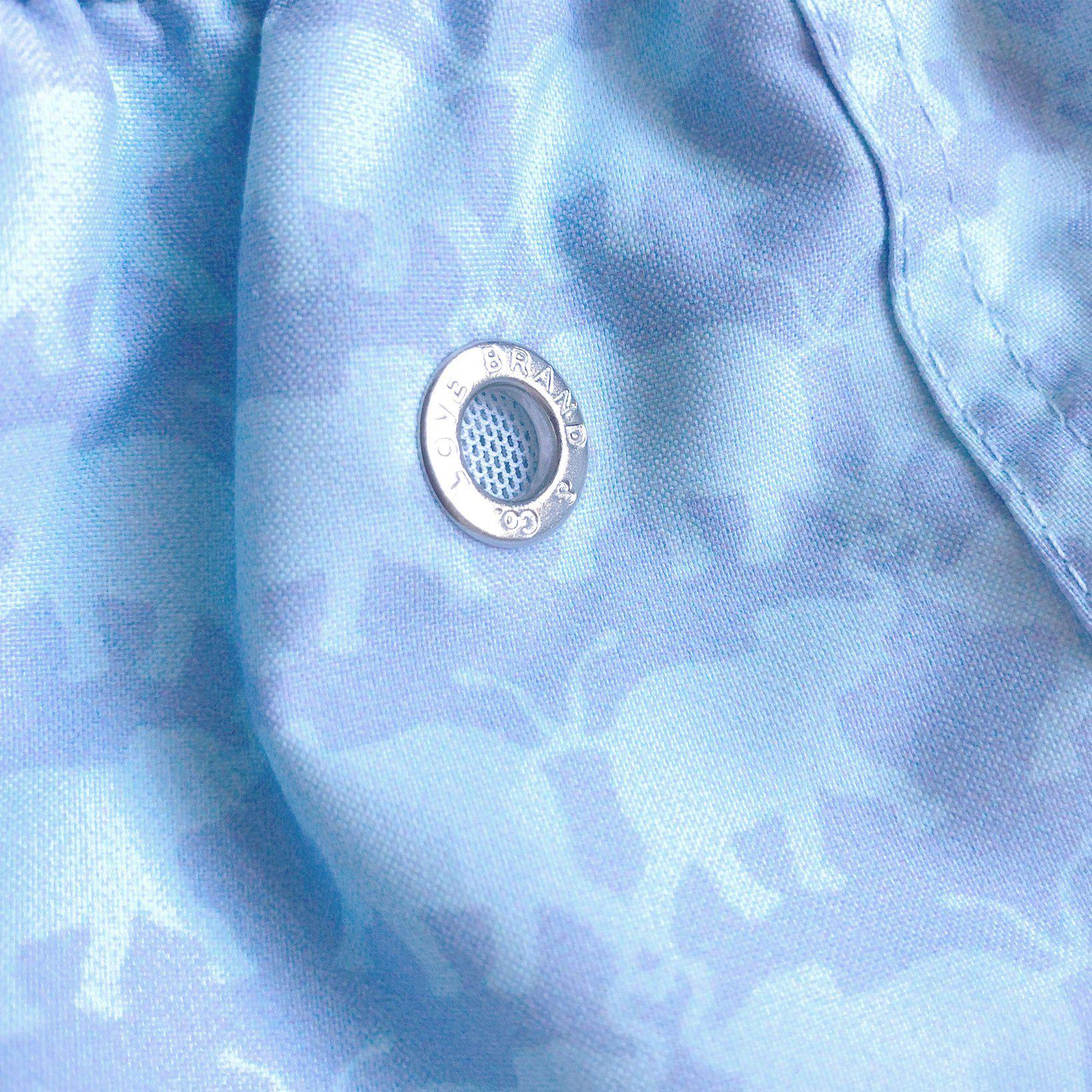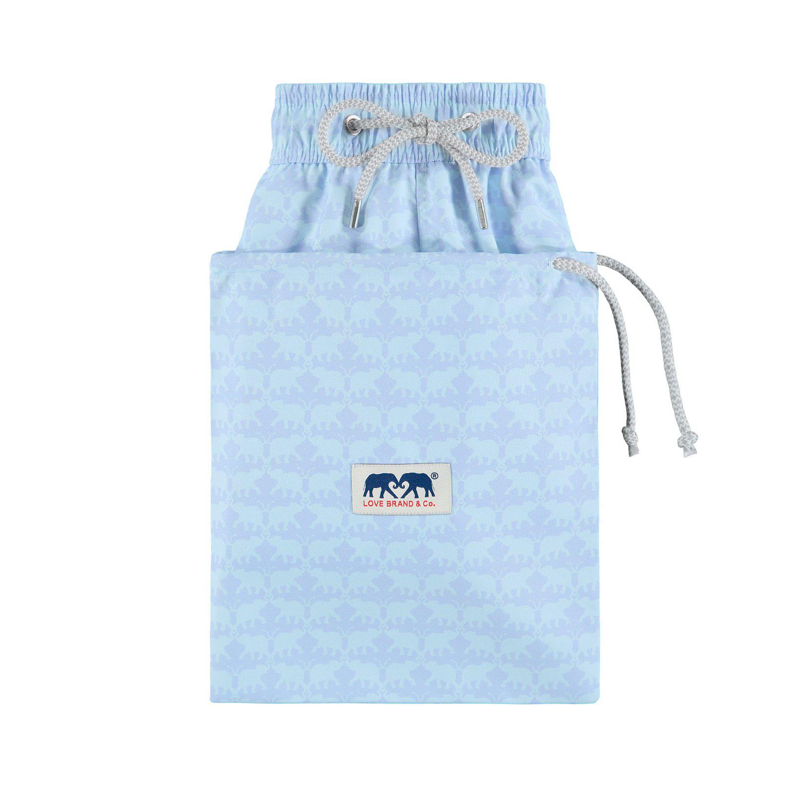 Una caratteristica stampa di elefanti in colori azzurri. Oliver di Love Brand Co. attira a mano gli elefanti, il bagagliaio al bagagliaio. La pressione è una celebrazione simbolica della missione di Oliver di salvare gli elefanti in natura. Questa pressione è ispirata dal comune Engagement Di Love Brand Co. e partner di beneficenza Wildaid per salvare gli elefanti selvaggiamente viventi.