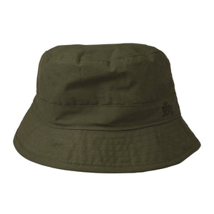 De droge wax emmer heeft - een traditionele Engelse vissershoed - is gemaakt van gewaxt katoen, het materiaal komt van het Britse bedrijf Millerain naar een bedrijf dat dit karakteristieke materiaal sinds 1880 levert.