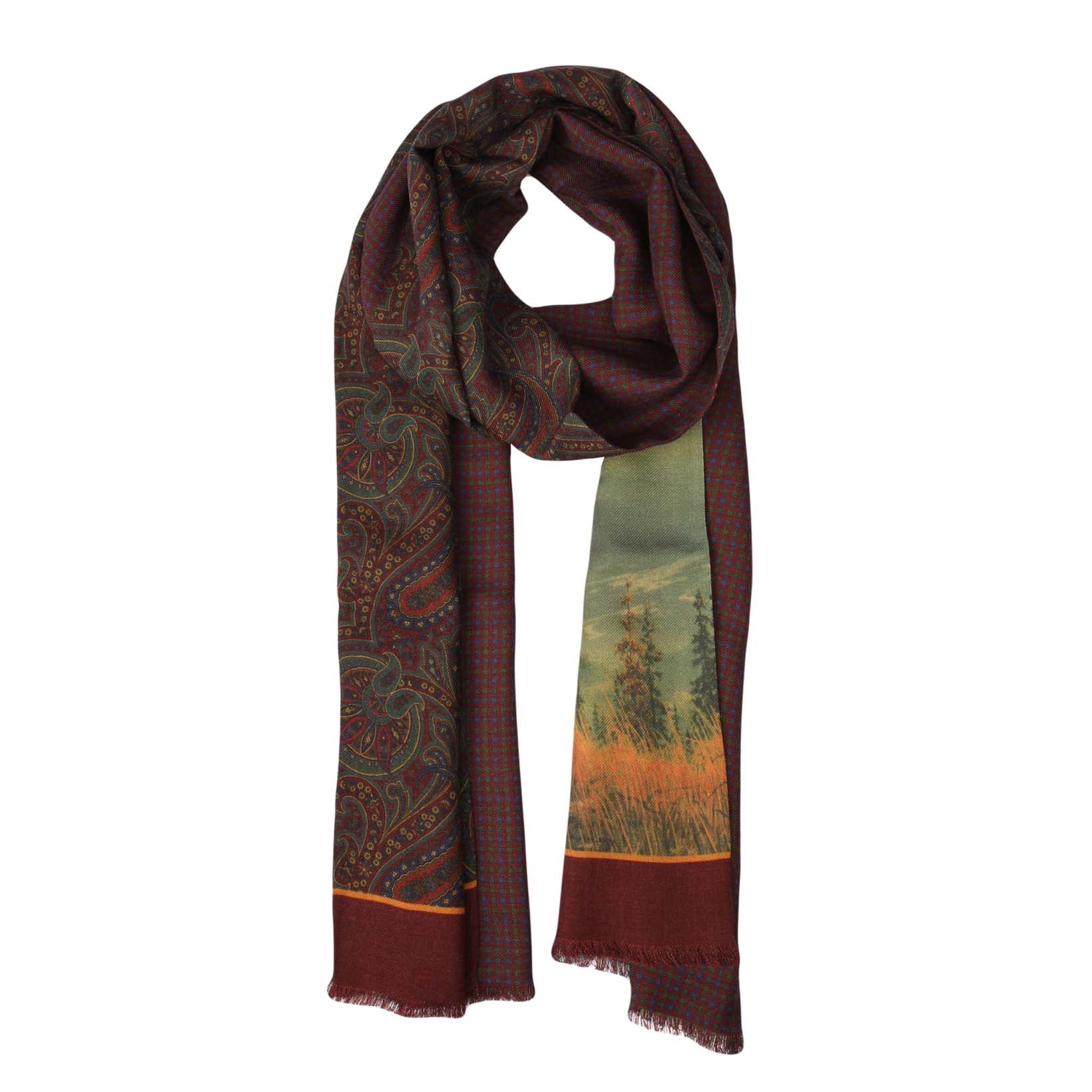 Deze elegante, dubbelzijdige sjaal combineert traditionele jachtmotieven met een klassiek tartan-design. Een fijn herten- of fazantenmotief gecombineerd met een paisleypatroon siert de sjaal aan één kant, terwijl de achterkant indruk maakt met een tijdloos tartanpatroon. Gemaakt van een hoogwaardige mix van 70% wol en 30% zijde, biedt het warmte, ademend vermogen en een aangenaam draagcomfort. Ideaal voor stijlbewuste liefhebbers van rustieke elegantie met een vleugje luxe.