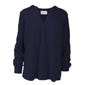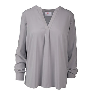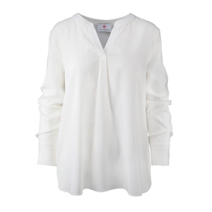De zijden blouse met een V-hals is gemaakt van 95% zijde en 5% elastan en zorgt voor een luxueus gevoel. Met knoppen op de mouwen en een afgeronde zoom is ze een perfecte metgezel voor elke gelegenheid.