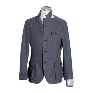 Ein Sakko aus durablem Stoff mit geräumigen, aufgesetzten Pattentaschen, durch Reißverschlüsse schließbare Bewegungsfalten hinter den Armen, Seitenschlitzen und Rückengurt für Aktivitäten unter freiem Himmel.