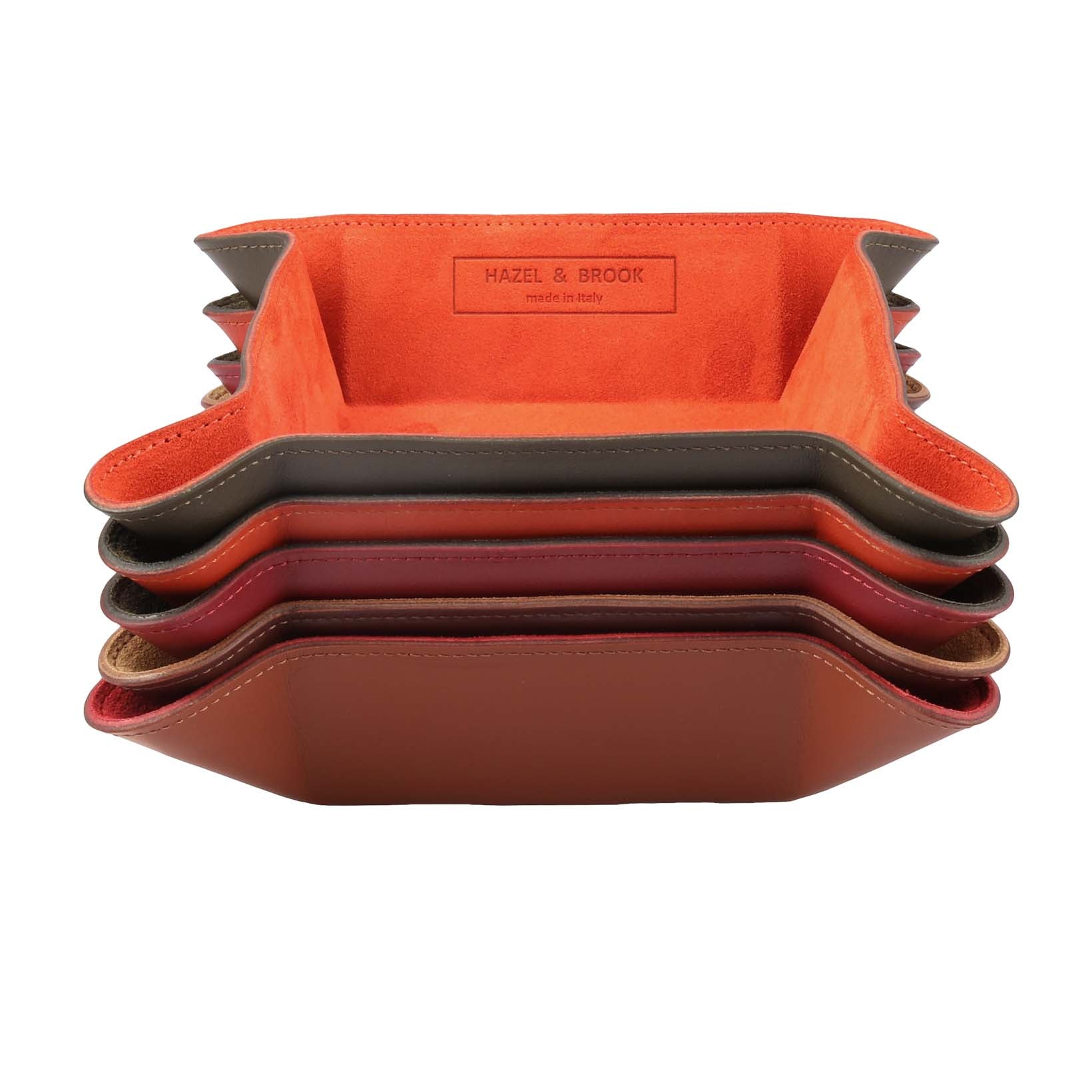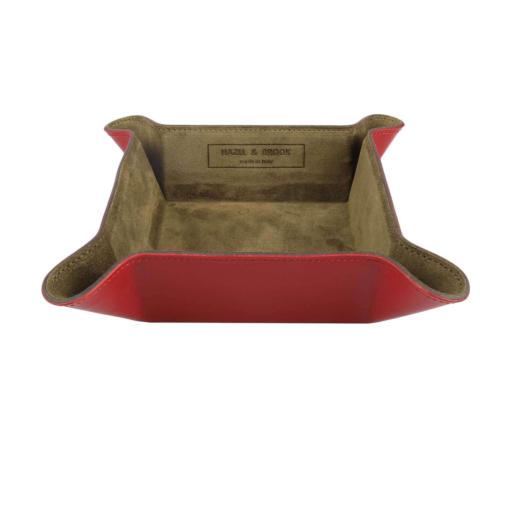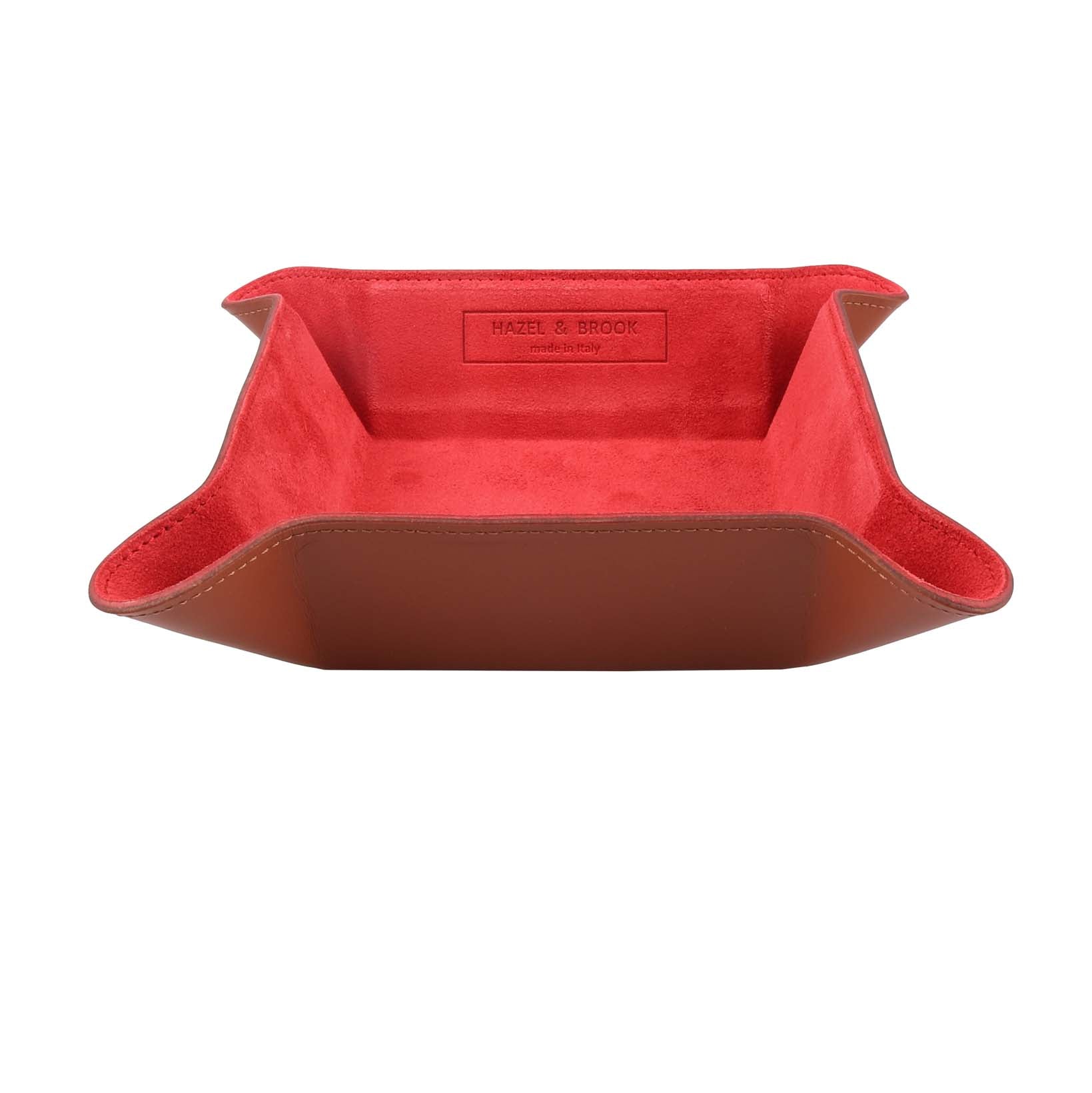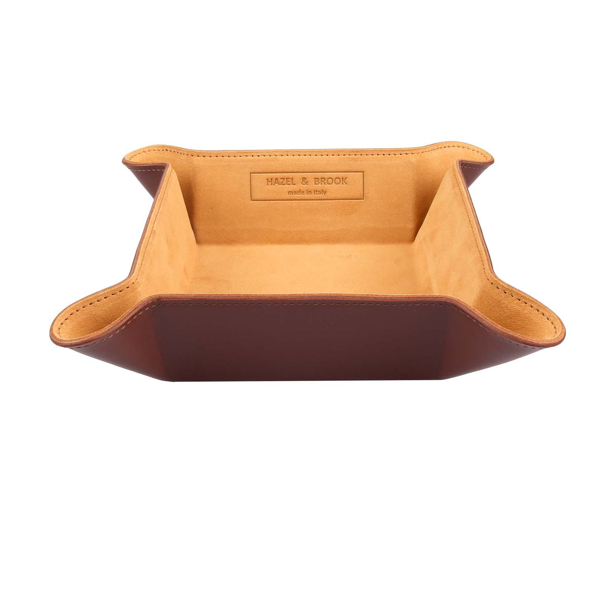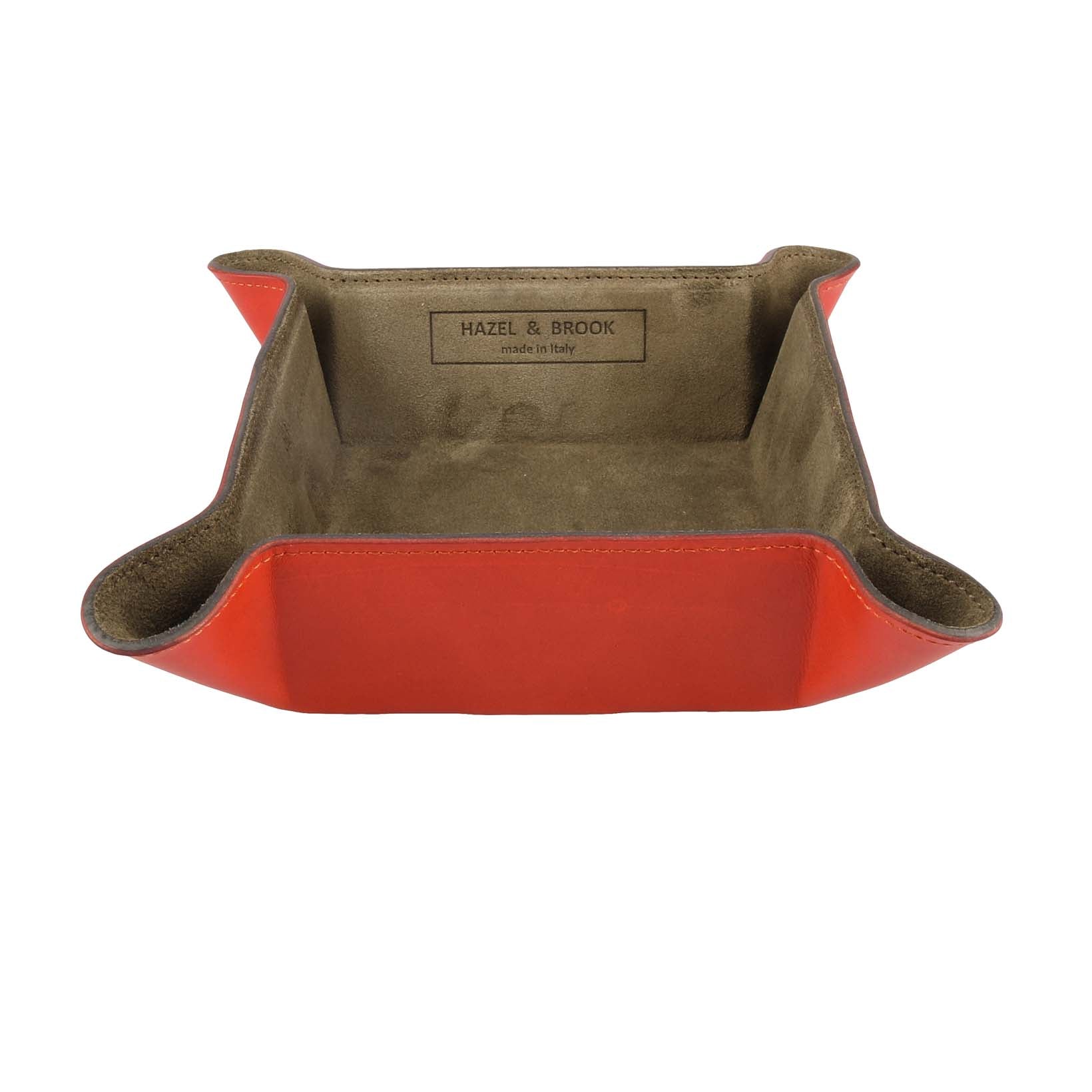 Diese Ablageschale aus 100% Leder ist in Italien hergestellt und verfügt über eine einzigartige Metall-Platte, um die Form anpassen zu können.