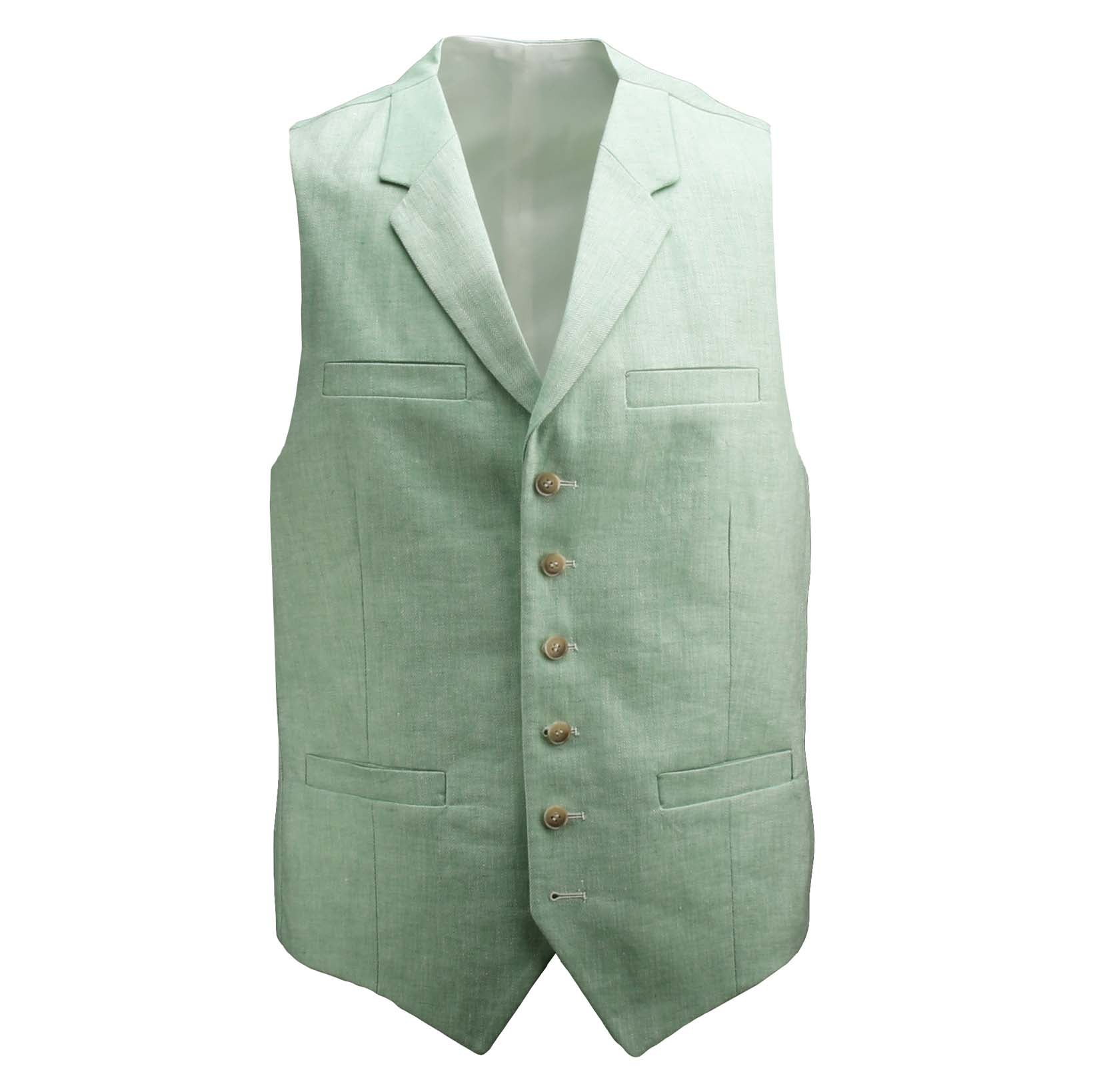 O CutawAway Vest-A Real Wedding Classic, aqui em uma execução de uma única fila em Pistachien-Green.