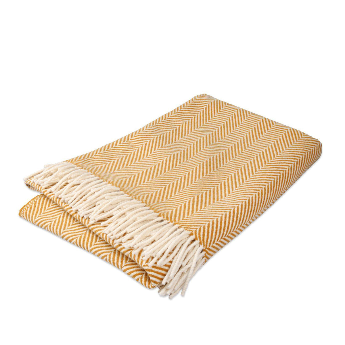 Fique confortável neste inverno sob um cobertor Merino Fine super macio. O impressionante padrão de peixe, tecido em Ocker e Ecru, dá à sua casa um toque brilhante de cor. Este cobertor dá sua sala de estar, seu quarto ou conforto e elegância no quarto.