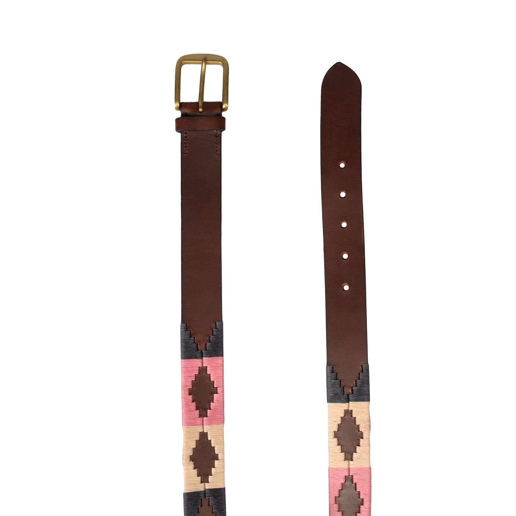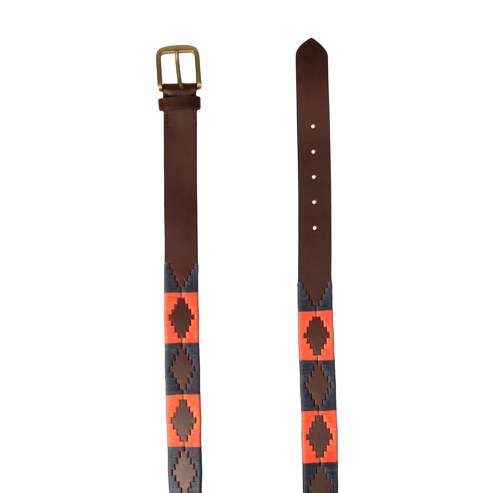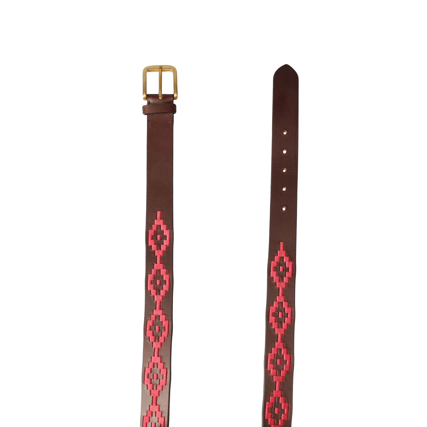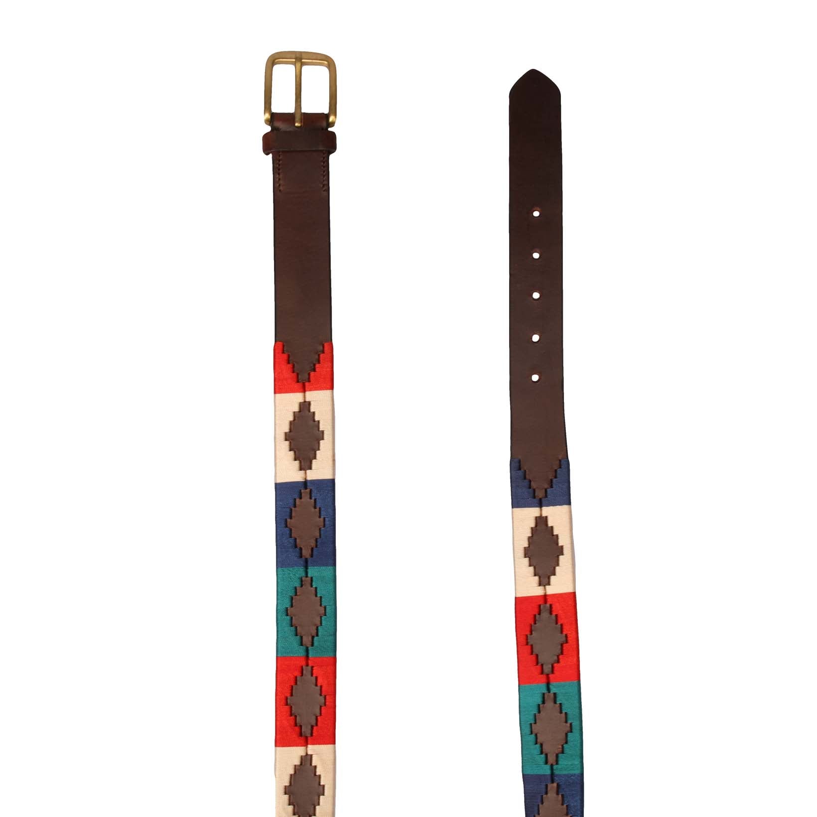 O cinto de pólo no nobre design argentino feito de couro de sela marrom é costurado na melhor qualidade com cores diferentes, colorido de tambor e plantado em ervas.