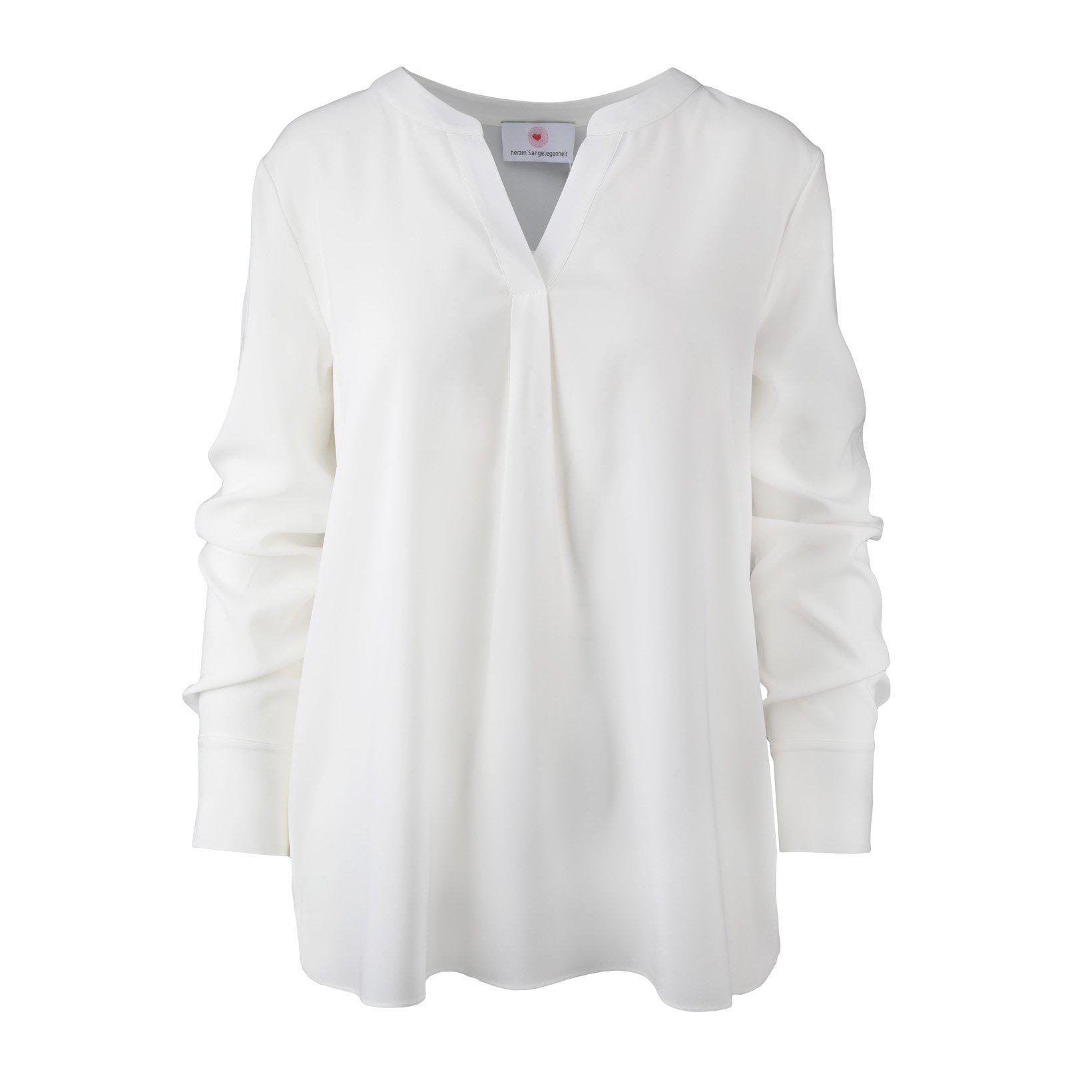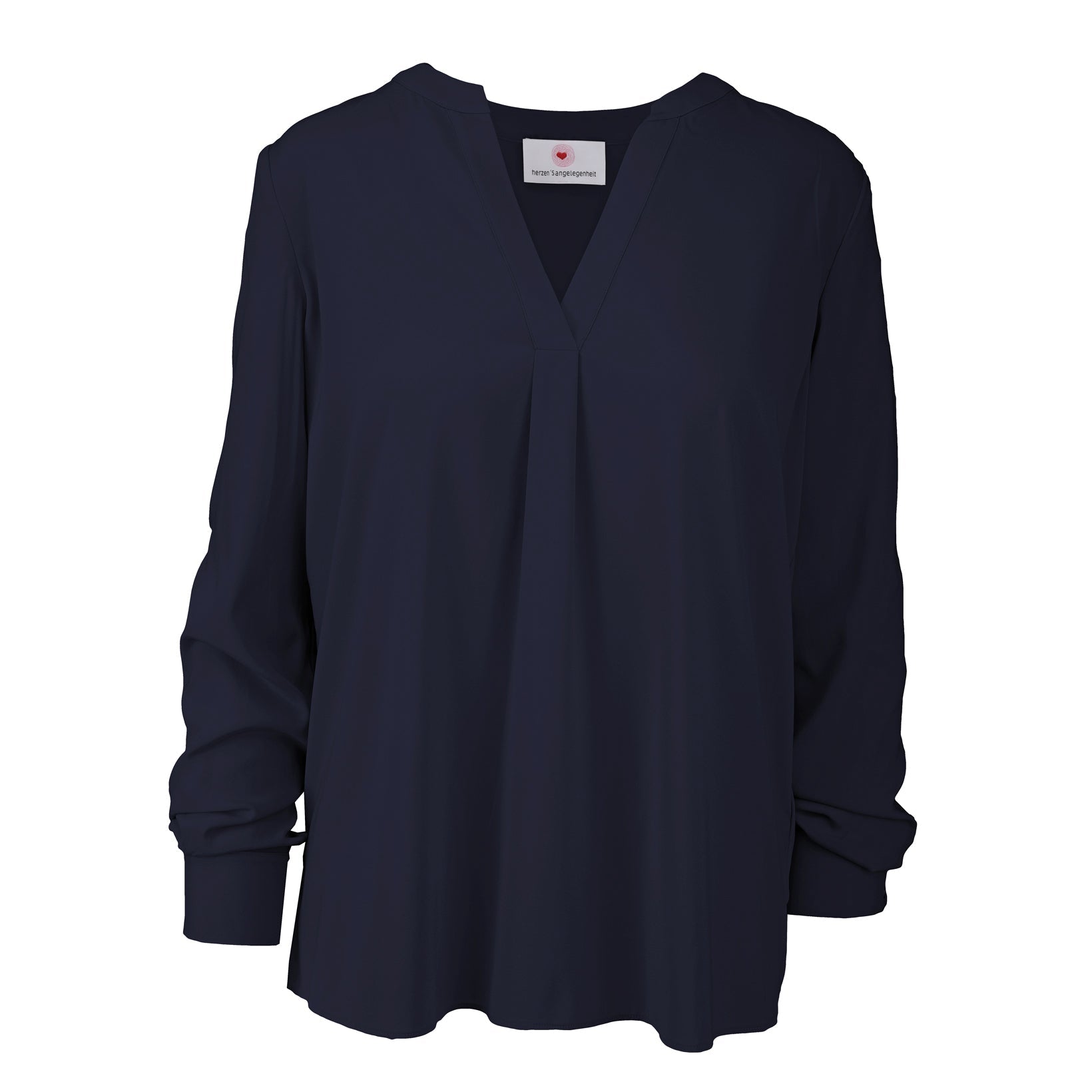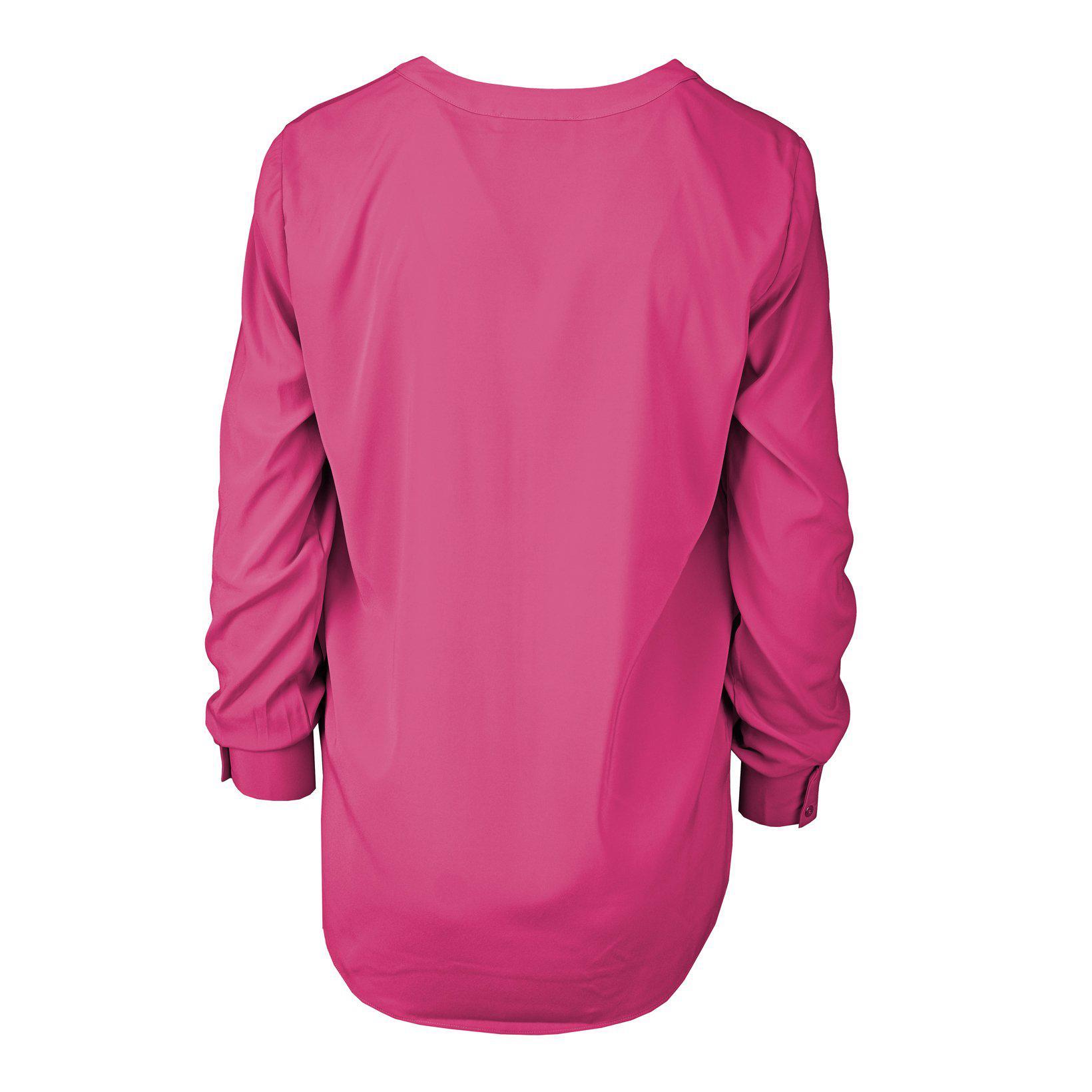 A blusa de seda com um decote em V é feita de 95% de seda e 5% de elastan e garante uma sensação de luxo. Com botões nas mangas e uma bainha arredondada, ela é uma companheira perfeita para todas as ocasiões.