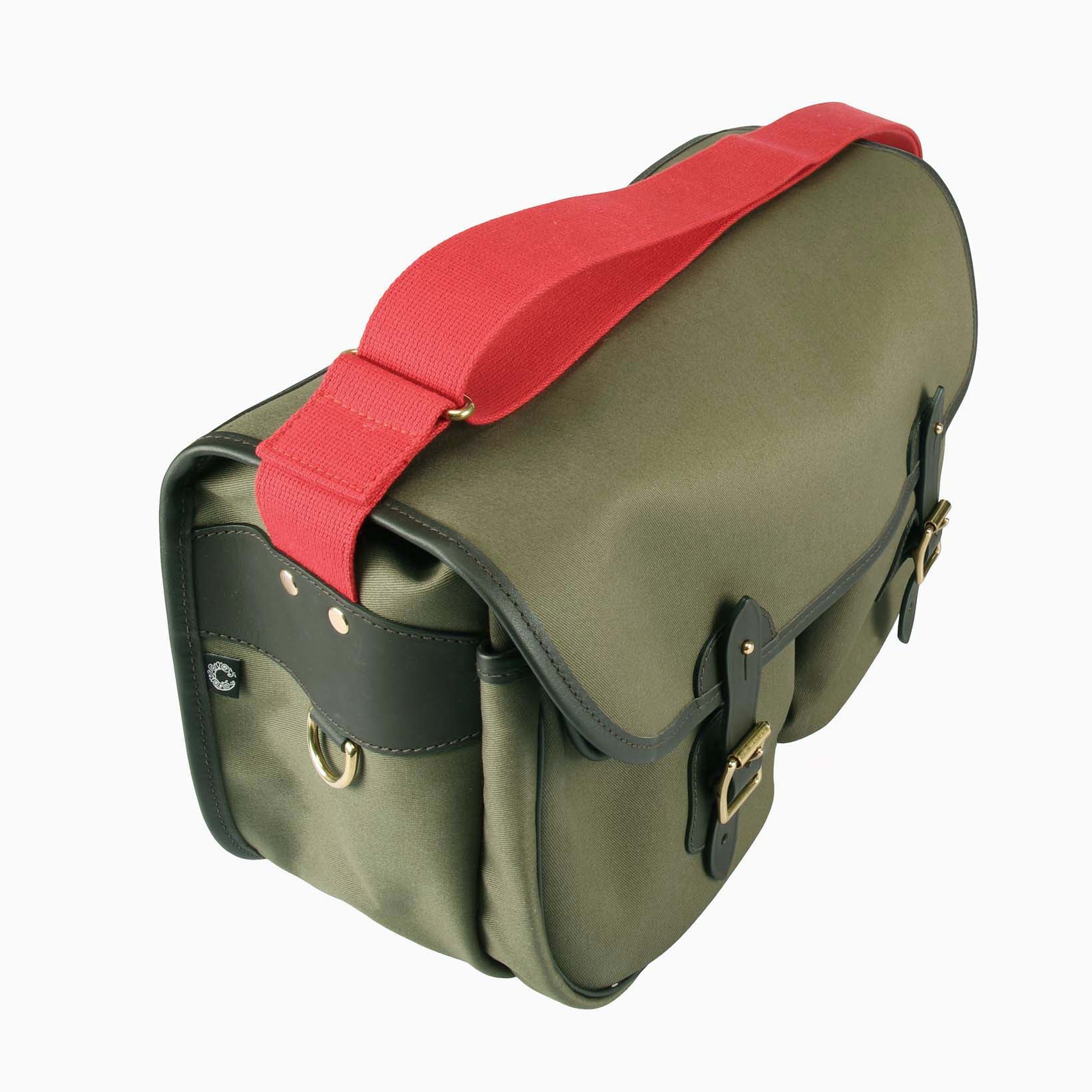 Vår bärväska finns i tre storlekar och har ett rymligt huvudfack, en kontinuerlig ryggficka och två fickor med läder med ett klafflås på framsidan. Axelremmen gjord av bomullstyg är helt justerbar och mycket bekväm med en bredd på 5 cm.